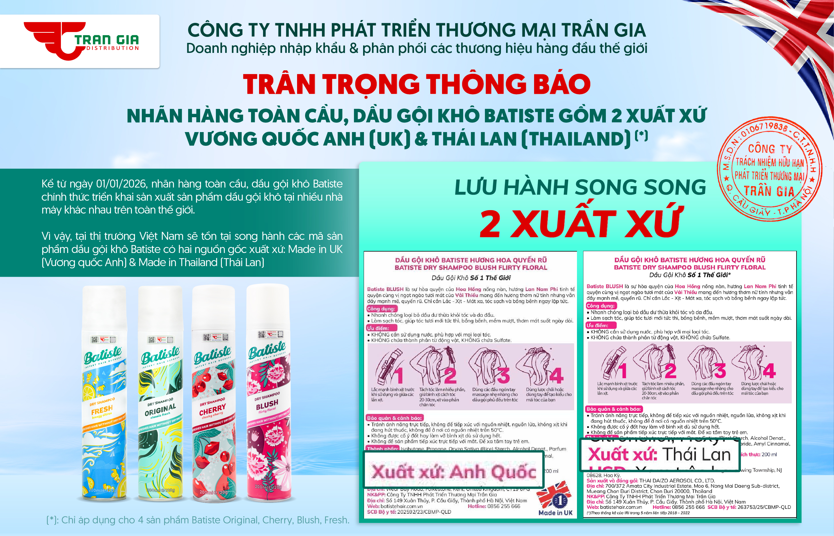 Chiếc hộp ma thuật Batiste hô biến mái tóc bết dính, xẹp lép trở nên sạch sẽ, bồng bềnh, suôn mượt trong tích tắc mà không cần dùng nước. Thật tuyệt vời khi Batiste sở hữu hương thơm đa dạng từ hoa tươi, trái cây và nhiều dòng sản phẩm chuyên biệt chăm sóc từng loại tóc giúp bạn dễ dàng lựa chọn, định hình phong cách cho riêng mình. Với thiết kế chai cầm tay nhỏ gọn, Batiste trở nên tiện lợi hơn bao giờ hết! Chỉ với 03 thao tác LẮC – XỊT – MASSAGE, tóc đẹp hoàn hảo tại bất cứ nơi đâu và bất kỳ khi nào. Hơn 50 năm không ngừng phát triển và cải tiến, Batiste đã trở thành thương hiệu Dầu Gội Khô số 1 Thế Giới, có mặt tại hơn 110 quốc gia, được hàng triệu triệu khách hàng tin dùng!